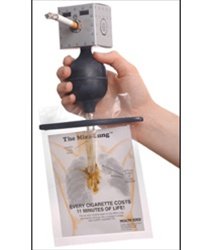 This small, hand-held model actually smokes a cigarette and collects tar on a photo of a real chest X-ray of a lung cancer victim. Stained prints fit into plastic bags, keeping stains intact when they are passed around for closer inspection. Comes with 100 Mini-Lung™ sheets, plastic bags, and a clip to help keep each bag in place. .95