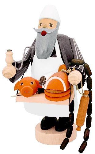 The butcher is always one of the most popular KWO smokers year after year. The bearded male butcher features intricate and very detailed cuts of meat and sausage links. German KWO Smoker Specifications: * Introduced in 1996 * 7.5 inches tall * Hand carved and painted by KWO artisans in Erzgebirge Germany * Handcrafted from solid wood