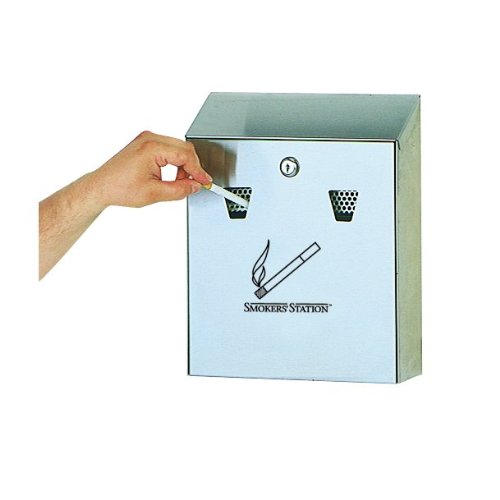 Rubbermaid Commercial Steel Smokers Station Wall Mount Urn with Keyed Cam Lock, Legend "Smokers Station", Rectangular, 3" Width x 10" Depth x 12.5" Height, Silver Review